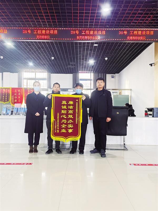 近日,太康縣某置業(yè)公司相關(guān)負(fù)責(zé)人將一面印有“廉潔高效辦實(shí)事 真誠(chéng)貼心為企業(yè)”字樣的錦旗送到縣自然資源局,感謝工作人員為他們提供優(yōu)質(zhì)、高效、熱情的服務(wù)。