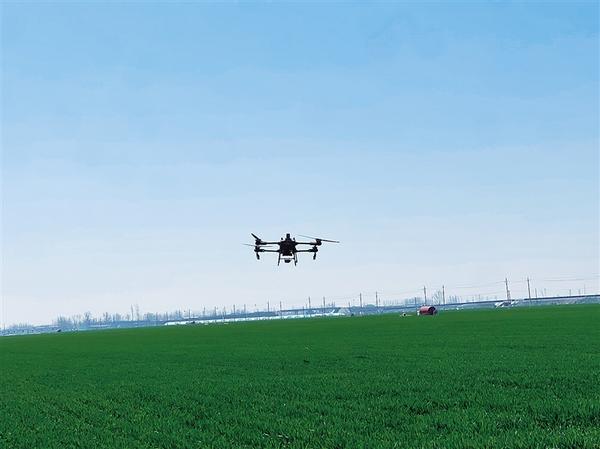 小麥春管正當(dāng)時,科技賦能助力豐收。近日,黃泛區(qū)農(nóng)場利用無人機(jī)為小麥噴灑農(nóng)藥,大大提高了作業(yè)效率,省時省力又省心,為農(nóng)業(yè)插上了科技翅膀。