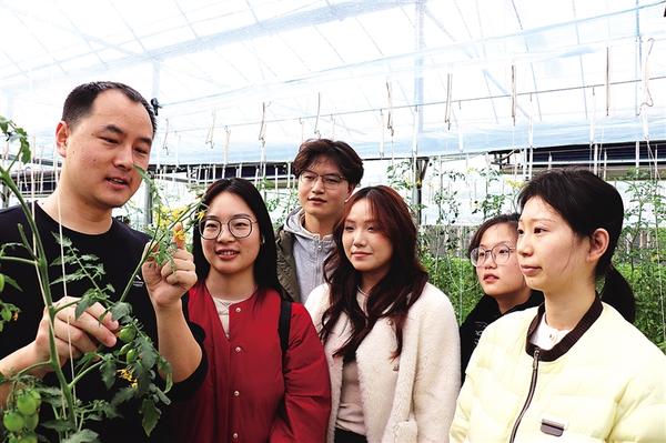12月7日,扶溝蔬菜研究院的技術員向河南農業(yè)大學園藝學院的學生傳授番茄管理技術。