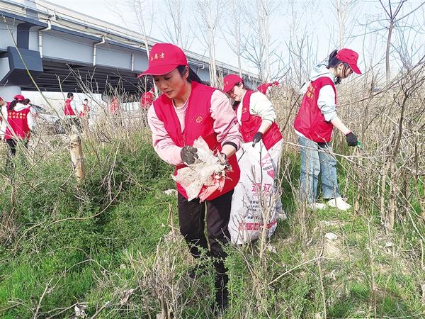3月22日,志愿者在沙潁河畔撿拾垃圾。當(dāng)日,67名來(lái)自周口市環(huán)境保護(hù)協(xié)會(huì)、周口師范學(xué)院、周口恒大中學(xué)的環(huán)保志愿者,在中心城區(qū)沙潁河畔開(kāi)展“世界水日、中國(guó)水周,護(hù)河凈灘在行動(dòng)”活動(dòng),以實(shí)際行動(dòng)踐行“綠水青山就是金山銀山”理念。