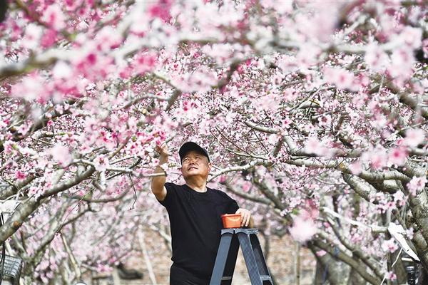 3月23日上午,工作人員為桃花授粉。近日,川匯區(qū)園藝中心的200多畝桃花競(jìng)相開(kāi)放,宛如世外桃源。隨著天氣逐漸轉(zhuǎn)暖,桃花、油菜花持續(xù)盛開(kāi),周口進(jìn)入“賞花模式”。