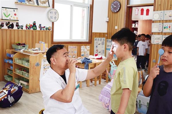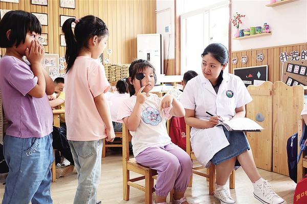 5月19日,扶溝縣中醫(yī)院眼科的醫(yī)護人員在扶溝縣直幼兒園為小朋友檢查視力。近日,為迎接即將到來的第30個全國“愛眼日”,扶溝縣多家幼兒園開展“愛眼護眼從小做起”主題活動,邀請醫(yī)務(wù)人員到校講解眼科知識和用眼衛(wèi)生常識,并為小朋友進行視力檢查,引導(dǎo)其養(yǎng)成正確用眼習慣。