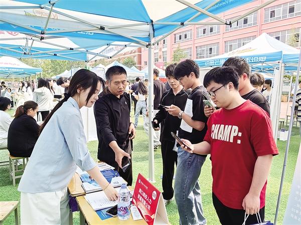 用人單位代表向求職學生介紹企業(yè)情況。5月15日,周口理工職業(yè)學院舉辦2025屆畢業(yè)生“雙選會”?;顒又?,求職學生積極與用人單位代表溝通交流、提交個人簡歷。用人單位代表耐心解答疑問,介紹公司發(fā)展前景、崗位需求及福利待遇等情況,積極招攬優(yōu)秀人才。