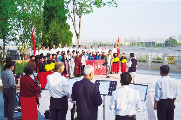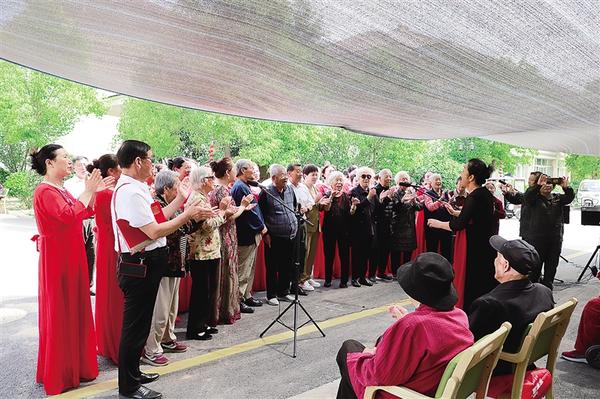 4月27日,周口市退伍軍人合唱團(tuán)到川匯區(qū)太昊路老年護(hù)理院慰問演出。合唱團(tuán)成員與老人一起演唱《我的祖國(guó)》。