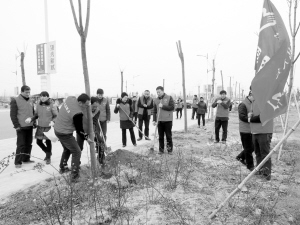 3月5日,扶溝縣人大志愿者來到縣人民公園植樹、拾垃圾,以實(shí)際行動營造文明新風(fēng)。李會平 攝