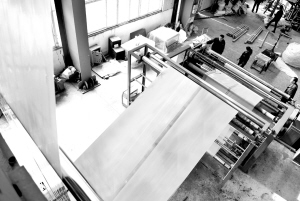 淮陽(yáng)縣銀豐塑料有限公司流水生產(chǎn)線一瞥。該公司擁有大中型吹塑膜機(jī)組40多臺(tái)、制袋生產(chǎn)線6條,并擁有完備的塑料制品化驗(yàn)檢測(cè)設(shè)備。生產(chǎn)的農(nóng)用塑料膜等產(chǎn)品暢銷蘇、魯、豫、皖等地,遠(yuǎn)銷美國(guó)、韓國(guó)等國(guó)家。(記者 沈湛 攝)