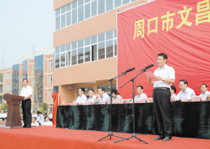 2012年,乘著周口市委“科教興周戰(zhàn)略”的東風,由周口市委、市政府、市東新區(qū)管委會傾力打造,投資3億元創(chuàng)辦的周口市文昌中學應(yīng)運而生。市委書記徐光親筆為該校題下“礪學弘文、昌達天下”的校訓(xùn)。