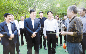 徐光一行又先后深入開發(fā)區(qū)人民廣場、星龍華緣健身場所、融輝城健身活動中心、商水縣夕陽紅健身園、周口市體育中心等地實地察看各項體育健身運動設(shè)施建設(shè)進展情況,聽取籌備工作情況匯報,了解場館布展和開幕式準備情況。看到一件件嶄新的健身運動器材、一塊塊新近完善提升的健身場地,特別是正在進行健身運動群眾的一張張笑臉,徐光滿意地點點頭,并來到市民中間,與大家親切交談,和正在健身的市民打乒乓球、試用健身器材,共同分享健身帶來的樂趣。徐光說,我市作為省十二屆“老健會”的承辦方,在時間緊、任務(wù)重、標準高、壓力大的情況下,各相關(guān)單位按照市委、市政府的安排部署,講政治、顧大局、做貢獻,做了大量卓有成效的工作,可以說我市的全民健身場所功能得到了完善、形象得到了提升,市民參與健身活動的途徑和選擇更加方便多樣,參與健身的熱情更加高漲,市委對大家的工作是滿意的。但是,我們還要看到,我市的全民健身工作與群眾的需求還存在一定差距,必須進一步加大投入力度,建設(shè)好、管理好、使用好相關(guān)體育健身設(shè)施,使之能夠更好地滿足群眾健身需求,服務(wù)百姓生活。