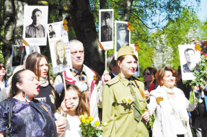 ③5月9日,在拉脫維亞首都里加,人們手持在衛(wèi)國(guó)戰(zhàn)爭(zhēng)中犧牲的親人照片參加紀(jì)念衛(wèi)國(guó)戰(zhàn)爭(zhēng)勝利70周年活動(dòng)。