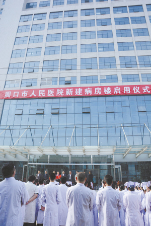 本報(bào)訊 4月24日,周口市人民醫(yī)院新病房樓舉行啟用儀式,標(biāo)志著這一重點(diǎn)民生工程即日起正式投入使用(左圖)。新病房樓的投入使用,將大大改善人民群眾的就醫(yī)環(huán)境,成為保障人民群眾醫(yī)療健康的一支重要力量。