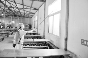 “這個(gè)藥品叫順氯·殘殺威,對(duì)消殺蚊蠅有很好效果,作用可以持續(xù)3個(gè)月左右。這會(huì)兒食堂里有刺鼻的味道,但十幾分鐘后基本上就聞不到了?!笔屑部刂行南究瓶崎L(zhǎng)胡偉說,這次用于消殺蚊蠅的都是高效、低毒的藥物,對(duì)人體危害不大。如果學(xué)生不小心觸摸到了,只要用清水洗掉即可,不用過于擔(dān)心。