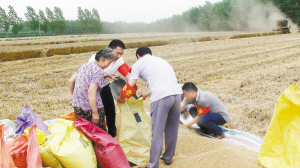 上圖:6月7日,商水縣鄧城鎮(zhèn)督查隊員在幫許村困難戶張翠蘭收麥子。三夏期間,該鎮(zhèn)成立16支三夏幫扶隊和督查隊,深入田間地頭幫助困難戶夏收夏種。(喬連軍 攝)
