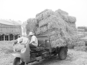 6月5日,商水縣魏集鎮(zhèn)菇農(nóng)正在收購小麥秸稈。該鎮(zhèn)商會以每斤0.1元的價(jià)格大量收購小麥秸稈,為當(dāng)?shù)胤N植雙孢菇的農(nóng)民積累了原料,同時(shí)也銷往外地造紙廠。(蘇建廣  攝)