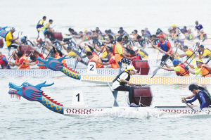 6月14日,選手們?cè)诒荣愔小?月13日,馬來(lái)西亞沙巴州首府哥打基納巴盧舉行第二屆沙華堂國(guó)際龍舟賽,迎接即將到來(lái)的中華民族傳統(tǒng)節(jié)日——端午節(jié)。