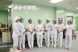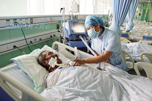 當(dāng)然,護(hù)理工作并非一帆風(fēng)順。眾所周知,ICU收治的都是重癥患者,患者大多數(shù)都有精神障礙,譫妄、昏迷、煩躁不安等狀況很常見,這就需要護(hù)士們充滿耐心和愛心。張衛(wèi)華以實(shí)際行動(dòng)詮釋人間大愛。2014年8月,科室里來了一名Ⅱ級(jí)肝性腦病的男性患者,已經(jīng)精神錯(cuò)亂且不認(rèn)人,行為非常危險(xiǎn)。由于該病不能使用鎮(zhèn)靜藥物,當(dāng)責(zé)任護(hù)士靠近患者時(shí),患者拿起床頭柜上的一個(gè)玻璃瓶向護(hù)士砸去。作為護(hù)士長的張衛(wèi)華見此情景,臨危不懼,用自己的身軀保護(hù)責(zé)任護(hù)士。只聽見啪的一聲,鮮血順著她的臉頰流了下來,可她還是慢慢走向那名患者,輕聲向他解釋情況以安撫其情緒?;颊叩那榫w漸漸地穩(wěn)定下來,她才去處理傷口,并輕松地說:“只要沒傷著病人就好。”有一次,科室里來了一名心梗住院的老人,老人的孩子都在外地,得知老人生病住院也沒趕回來照顧,甚至連一句問候都沒有。老人除了要忍受著病痛的折磨,還要忍受對(duì)孩子們的思念。張衛(wèi)華見此情景,非常心疼,為安慰老人,上班期間她都會(huì)去陪老人聊天,哄老人開心。老人吵著不舒服的時(shí)候,張衛(wèi)華用藥緩解,同時(shí)耐心安撫老人。晚上老人因?yàn)楹⒆拥氖虑?,?huì)像一個(gè)小孩兒一樣哭泣不止,張衛(wèi)華心疼地陪在老人身邊,一遍又一遍地安慰說:“別害怕,我在您身邊,我就是您的女兒。”