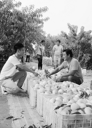 7月4日,扶溝縣江村鎮(zhèn)趙樓村村民正在摘桃出售。近年來,該鎮(zhèn)積極引導(dǎo)農(nóng)民種植桃、梨、蘋果等優(yōu)質(zhì)小雜果,有效增加了當(dāng)?shù)厝罕姷氖杖搿?/P>