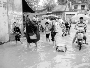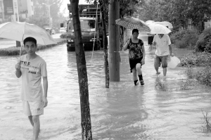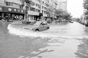 淮陽城區(qū)部分路段積水成災(zāi) 晚報(bào)記者 杜欣 攝