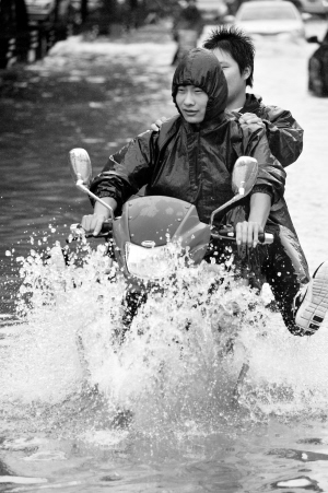 車在水中行 激起“浪花”一片 晚報(bào)記者 朱海龍 攝