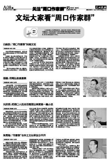 對(duì)于周口作家異軍突起的現(xiàn)象,劉慶邦歸納為三點(diǎn):第一是有深厚的歷史優(yōu)勢,這里的優(yōu)勢包括人祖伏羲、道教李耳等,具有得天獨(dú)厚的歷史資源,是每個(gè)作家用之不竭的題材;第二是民間文化優(yōu)勢,每種風(fēng)俗習(xí)慣都是我們所獨(dú)有的民間文化;第三是本地語言優(yōu)勢,周口處于南北地帶的交匯處,語言非常豐富,如果能把本地人的對(duì)話整理出來就是一篇很好看的小說。劉慶邦說,家鄉(xiāng)的語言優(yōu)勢較為明顯,在鄉(xiāng)土小說里,大多采用的是對(duì)話或?qū)Π祝褂玫拇蠖嗍堑氐氐赖赖泥l(xiāng)土語言,聽起來親切自然。南方地區(qū)的作家卻很少用方言來對(duì)話,因?yàn)槟菢臃浅3粤?。劉慶邦寄予“周口作家群”很高的期望,他希望周口本土的作家都能走出去,用實(shí)力闖出自己的一片天地。